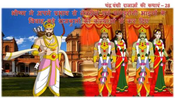 इसी प्रकार नियोग प्रथा में भी यह प्रावधान था कि पति की मृत्यु के बाद किसी स्त्री द्वारा अपने कुल को चलाने के लिए नियोग से प्राप्त पुत्र उस स्त्री के मृत-पति के कुल को चलाता था तथा उसी का नाम पाता था क्योंकि उस पुत्र का पालन अपनी माता के मृत-पति के घर में होता था। चूंकि धृतराष्ट्र एवं पाण्डु का पालन-पोषण अम्बिका एवं अम्बालिका के मृत-पति विचित्रवीर्य के महलों में हुआ था इसलिए धृतराष्ट्र एवं पाण्डु विचित्रवीर्य के पुत्र माने गए। उन्हें वे सभी अधिकार प्राप्त हुए जो उन्हें विचित्रवीर्य के पुत्र के रूप में मिलने चाहिए थे। चूंकि विदुर का लालन-पालन अम्बालिका की दासी के घर में हुआ था इसलिए विदुर को दासी पुत्र माना गया। अतः आर्य परम्परा के अनुसार राजकुमार पाण्डु को राज्य का योग्य उत्तराधिकारी माना गया। चूंकि धृतराष्ट्र और पाण्डु युवा हो चुके थे इस कारण भीष्म के समक्ष एक बार पुनः राजकुमारों के विवाह का वही प्रश्न आ खड़ा हुआ जो विचित्रवीर्य के समय में उत्पन्न हुआ था। जब भीष्म ने सुना कि गांधार नरेश की पुत्री गांधारी ने भगवान शिव को प्रसन्न करके सौ पुत्रों की माता होने का वरदान प्राप्त किया है तो भीष्म ने धृतराष्ट्र का विवाह गांधारी से करने का निर्णय लिया।