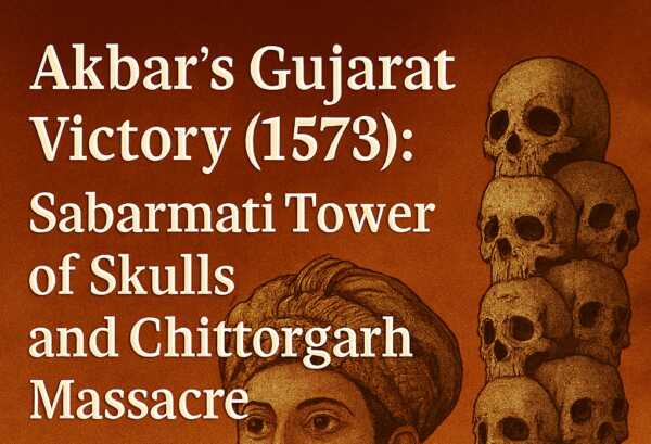 अकबर वही सब कुछ कर रहा था जो उसके पुरखे (Ancestors) करते आए थे। चित्तौड़ (Chittorgarh Fort) के दुर्ग में उसने तीस हजार निरअपराध मनुष्यों का कत्लेआम (Massacre) करवाया तथा साबरमती के तट पर कटे हुए सिरों की मीनार (Skull Monument) बनवाई।
