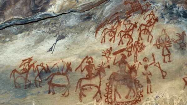 अल्मोड़ा के निकट दलबंद की एक गुफा में मिले एक चित्र में दो वयस्क और दो बालक पांव से पांव एवं हाथ से हाथ मिलाकर चलते हुए दिखाये गए हैं। यह चित्र परिवार की एकता एवं सुबद्धता का परिचायक है। नव-पाषाण-काल में दूर-दूर रहने वाले मानवों ने समुदायों का गठन कर लिया जिससे कबीलाई संस्कृति का जन्म हुआ। एक कबीले में कई परिवार एक साथ रहते थे। कबीले का एक मुखिया होता था, जिसने आगे के युगों में चलकर राजा का रूप ले लिया।