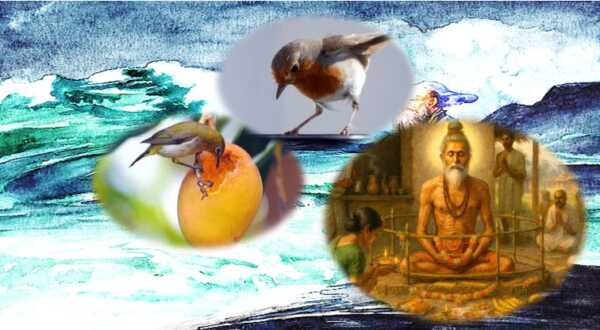 ऋषिश्रेष्ठ ने देखा कि तीनों लोकों में उन्होंने एक ही दृश्य को बार -बार घटित होते हुए देखा है। एक वृक्ष है जिसकी शाखा पर दो पक्षी बैठे हैं। पहला पक्षी फल खा रहा है और दूसरा पक्षी, पहले पक्षी से लिपटा हुआ है। हर काल खण्ड में पहला पक्षी ही फल खा रहा है। जबकि किसी भी काल खण्ड में दूसरा पक्षी कुछ नहीं खा रहा।