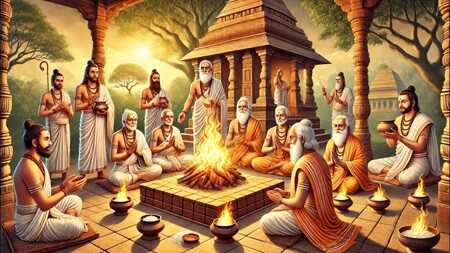 अंत में यह निश्चित किया गया कि अग्नि को सोम अर्पित करने में असमर्थ रहने के लिये अग्नि से क्षमा याचना की जाये तथा सोम के साथ दी जाने वाली आहुतियाँ घृत से दी जायें। दैनिक आहुतियों का क्रम विधिवत् पूर्ण कर चिंतित एवं व्यथित स्वरों से आर्यों ने पूर्णाहुति दी-