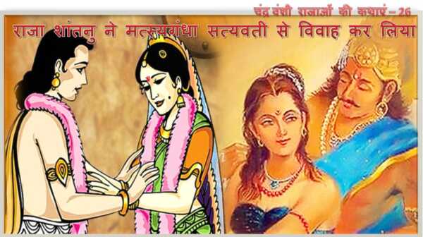 सत्यवती का उत्तर सुनकर महाराज शांतनु चकित रह गए। निषाद कन्या होकर इतना रूप वैभव, जिसकी समता कोई आर्यकन्या एवं देवकन्या भी नहीं कर सकती थी। महाराज को लगा कि यह भी अवश्य ही गंगा के समान स्वर्ग की अप्सरा होगी। इस कथा को आगे बढ़ाने से पहले हमें सत्यवती के अतीत के सम्बन्ध में कुछ चर्चा करनी होगी।