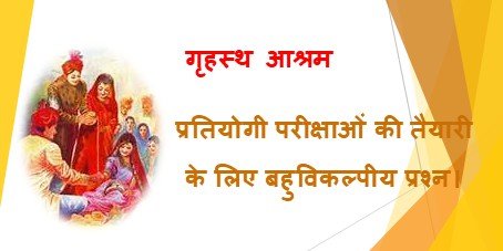 गृहस्थ आश्रम MCQ : प्रतियोगी परीक्षाओं की तैयारी के लिए विषय पर 70 बहुविकल्पीय प्रश्न। सही विकल्प के अंत में ✅ हरा टिक मार्क है।