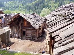 d) जलाशय - कश्मीर में अधिकतर घर किससे बनते थे?